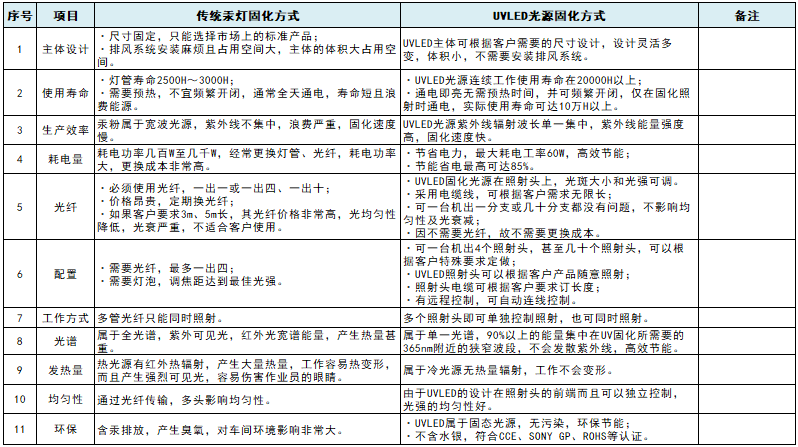 傳統(tǒng)汞燈固化方式及UVLED光源固化方式對(duì)比說明