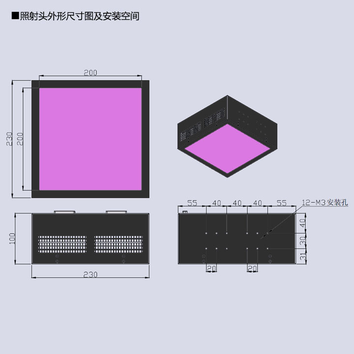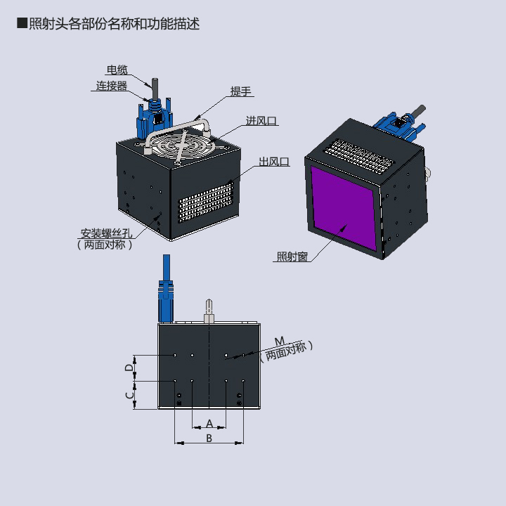 選型指導(dǎo):控制器+照射頭(1-4照射頭,標(biāo)準(zhǔn)品為30mm-200mm(長度)30mm-200mm(寬度),可定制不同波段,不同尺寸面光源)。