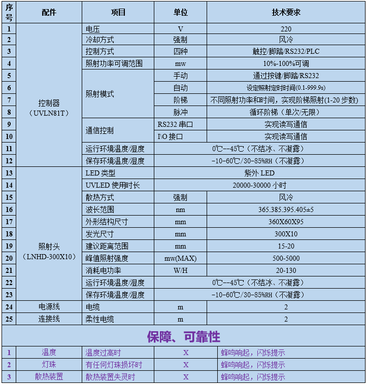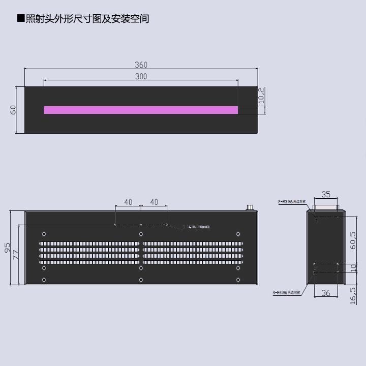 選型指導(dǎo):控制器+照射頭(1-4照射頭,標(biāo)準(zhǔn)品為30mm-500mm(長(zhǎng)度),10mm-20mm(寬度),可定制不同波段,不同尺寸線光源)。