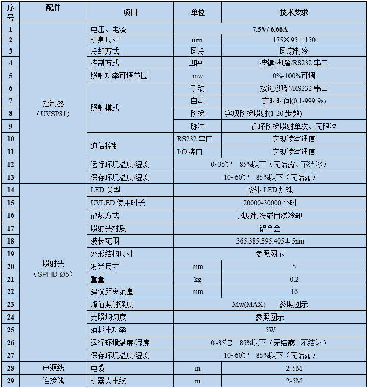 選型指導(dǎo):控制器+照射頭(1-4照射頭線長可選)+透鏡(?1.5mm-?16mm)+自然冷卻或風(fēng)冷